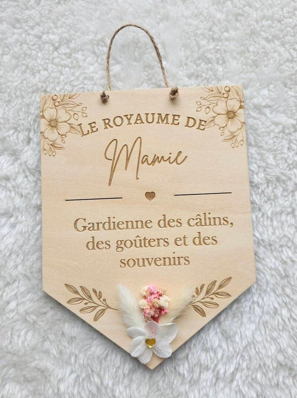 Plaque décorative en bois gravé, idéale comme cadeau mamie personnalisé. Cette décoration murale en bois au style bohème rend hommage aux grands-mères avec un message plein de tendresse. Un cadeau original pour la fête des grands-mères, un anniversaire ou Noël, à offrir à une mamie exceptionnelle.